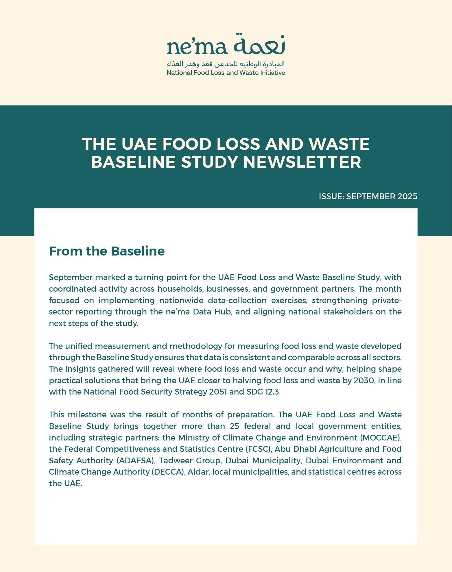 In the coming weeks, ne’ma will continue engaging stakeholders through topic-specific workshops and prepare for activities surrounding Global Food Week. The next phase of the UAE Food Loss and Waste Baseline Study will focus on validating insights gathered to date, deepening engagement on the ground, and shaping effective, scalable solutions to reduce food loss and waste nationwide.